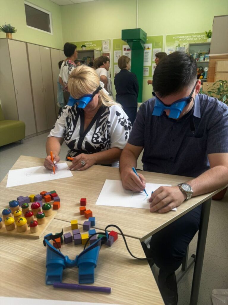 Участники начали с экскурсии по школе: посетили ресурсный класс, кабинеты психолога, логопеда и дефектолога, познакомились с практиками организации доступной среды.