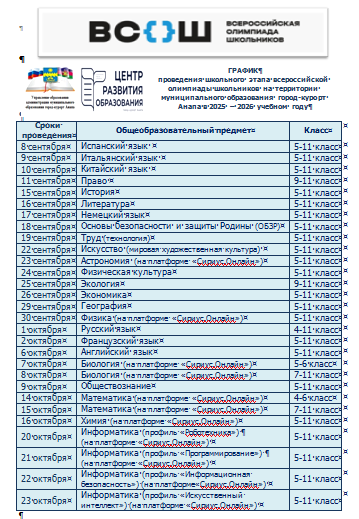 Школьный этап всероссийской олимпиады школьников 2025-2026 учебного года